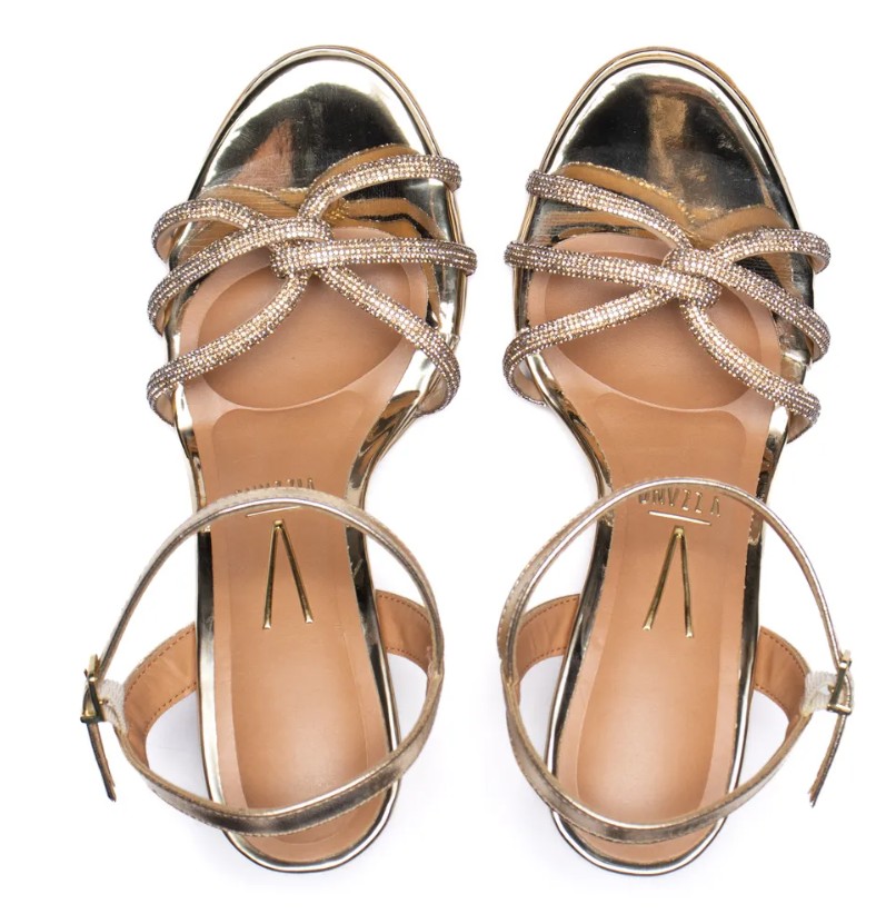 A Sandália Feminina Vizzano Salto Fino com Strass Dourado é sinônimo de sofisticação e elegância.
